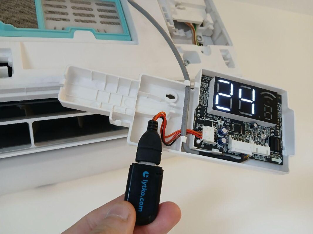 Тут все просто. Данный производитель как правило оснащает почти все модели модулем Wi-Fi, либо разъёмом/проводом. В старых версиях это были модули на USB разъеме, в новых это проприетарный разъём и модуль. Комплект Lytko 102 состоит из самого стика для управления и провода-переходника, подключаемого к плате кондиционера. Если у вас USB, то просто вставьте в него наш стик и настройте, согласно инструкции.
