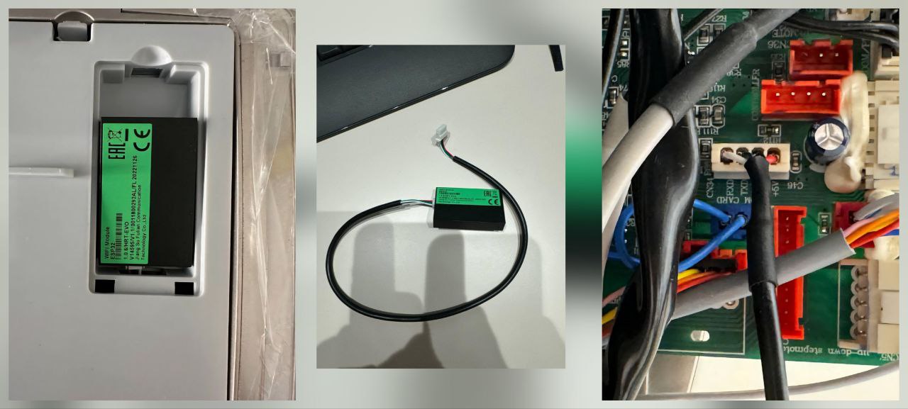 Производитель данных кондиционеров пошел своим путем и у него все свое. Под эту модель была разработана чуть более габаритная модель lytko 102. У данного производителя определить поддержку подключения можно так: под крышкой должен быть незадействованный четырёхпиновый разъем на проводе.