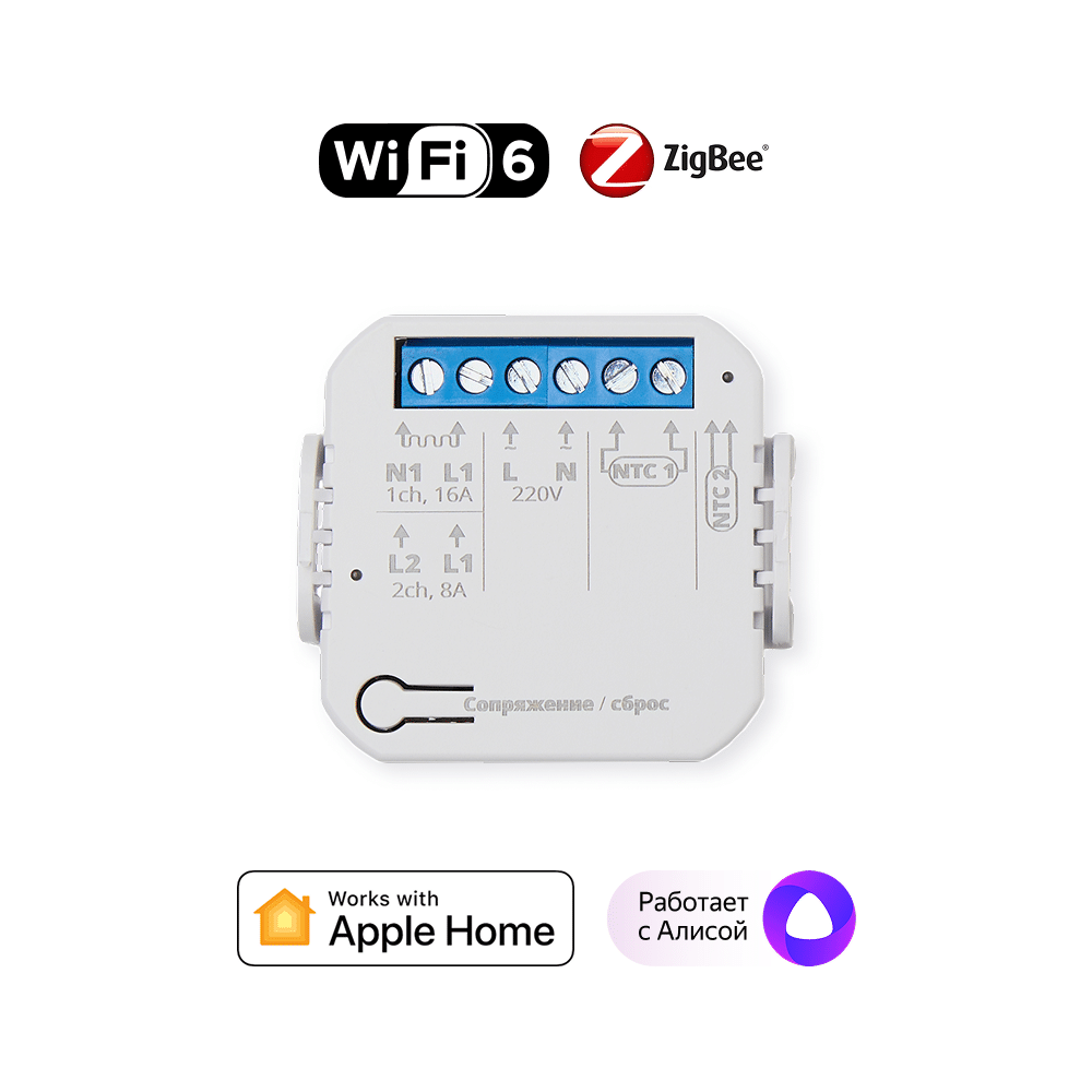 Wi-Fi 1 канал (16А) ,ZigBee 1 канал (16А) ,ZigBee 2 канала (по 8А) |
